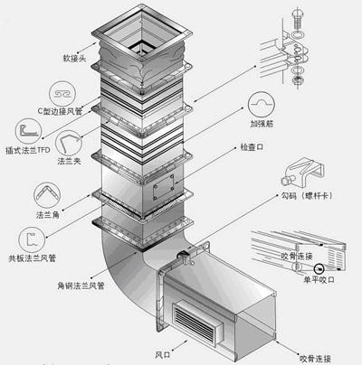 可分为角铁法兰风管,共板法兰风管。应用